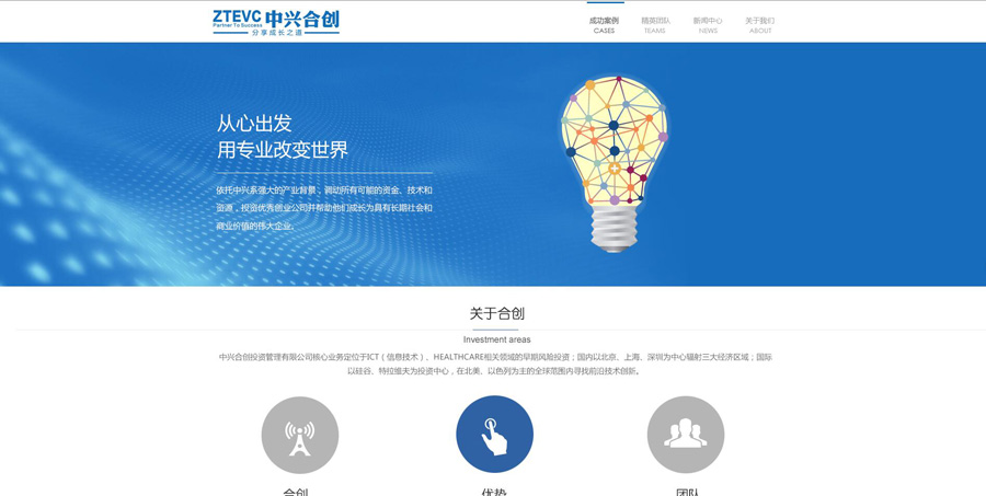 中興合創(chuàng)投資管理有限公司(以下簡稱“中興合創(chuàng)”)成立于2010年9月,是專業(yè)從事戰(zhàn)略新興產(chǎn)業(yè)創(chuàng)業(yè)投資、PE私募股權投資及資產(chǎn)管理業(yè)務的投資管理公司。中興合創(chuàng)目前管理著三支股