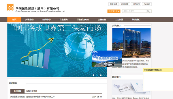 深圳網(wǎng)站建設(shè)項目:華潤保險 華潤保險顧問有限公司隸屬于華潤(集團)有限公司,旨在為企業(yè)客戶提供高質(zhì)量的保險經(jīng)紀、風(fēng)險管理以及員工福利顧問服務(wù)。其前身可追溯 到1986年成