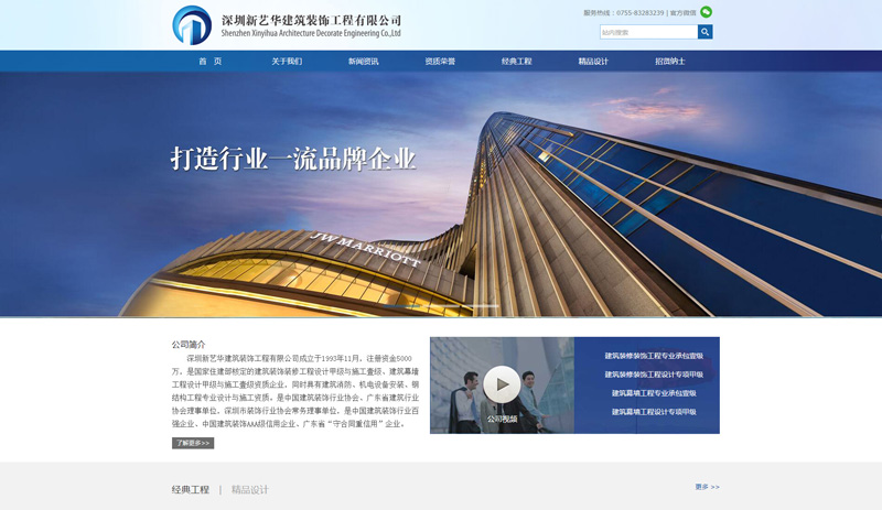 深圳新藝華建筑裝飾工程有限公司成立于1993年11月,注冊(cè)資金5000萬,是國家住建部核定的建筑裝飾裝修工程設(shè)計(jì)甲級(jí)與施工壹級(jí)、建筑幕墻工程設(shè)計(jì)甲級(jí)與施工壹級(jí)資質(zhì)企業(yè),同時(shí)具有