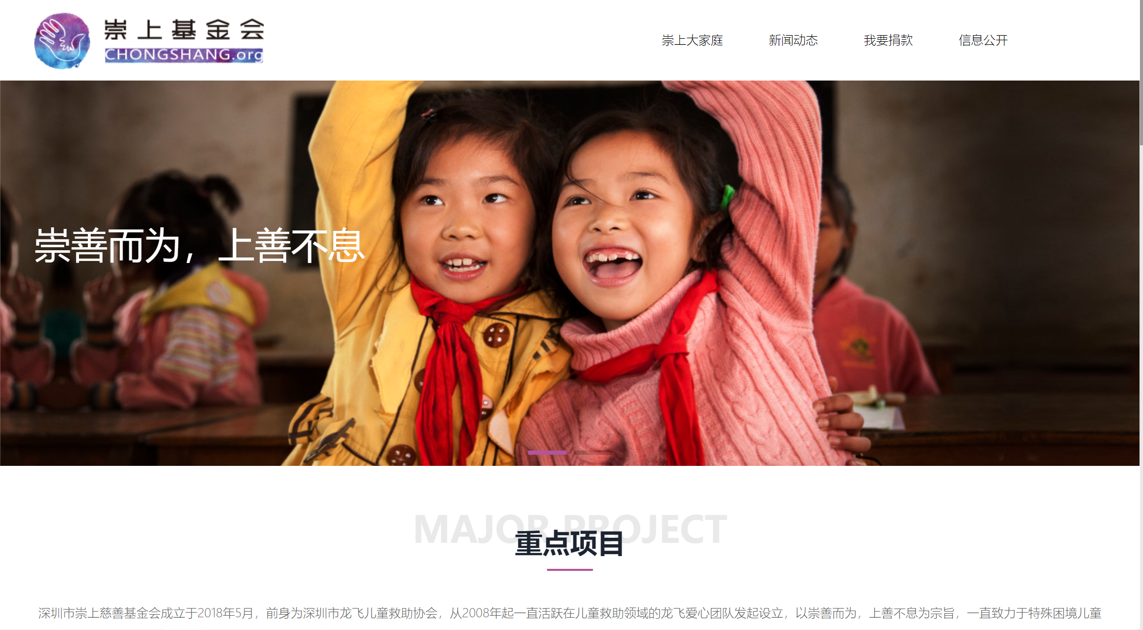 深圳市崇上慈善基金會(huì)成立于2018年5月,前身為深圳市龍飛兒童救助協(xié)會(huì),從2008年起一直活躍在兒童救助領(lǐng)域的龍飛愛心團(tuán)...